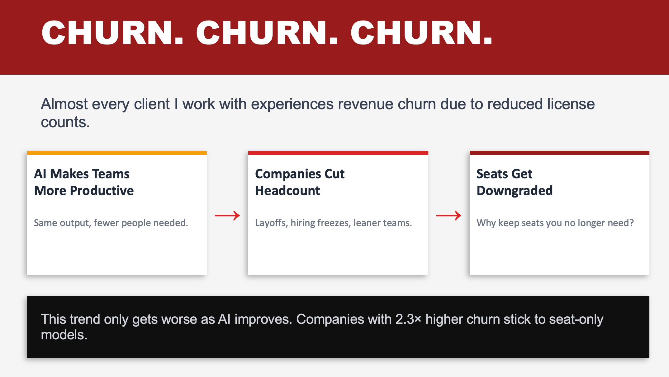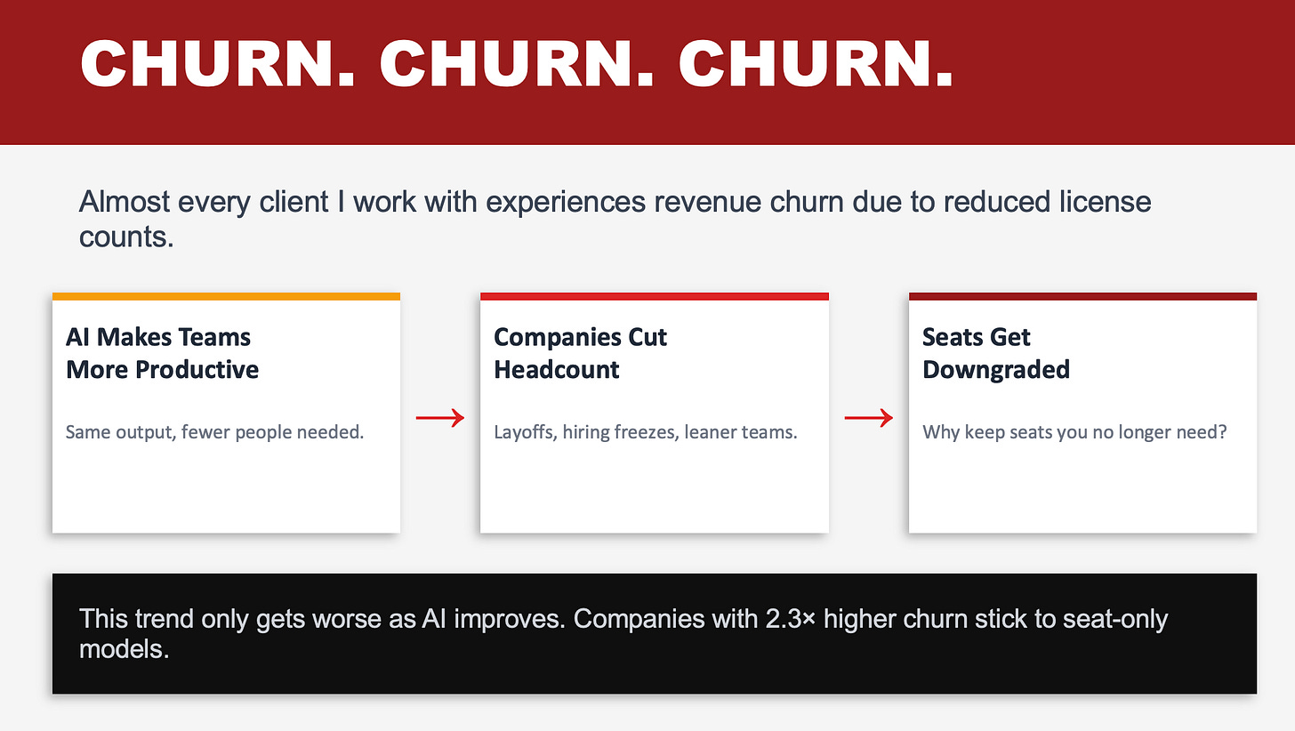 Here’s what happens: AI makes teams more productive. Companies cut headcount. Seats get downgraded.