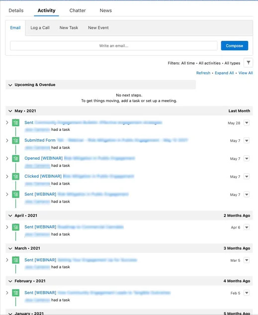 The main use case will be to provide visibility to your sales team. This may involve the Visualforce page in Salesforce. It is one way to give your team visibility into the Marketing Activities.