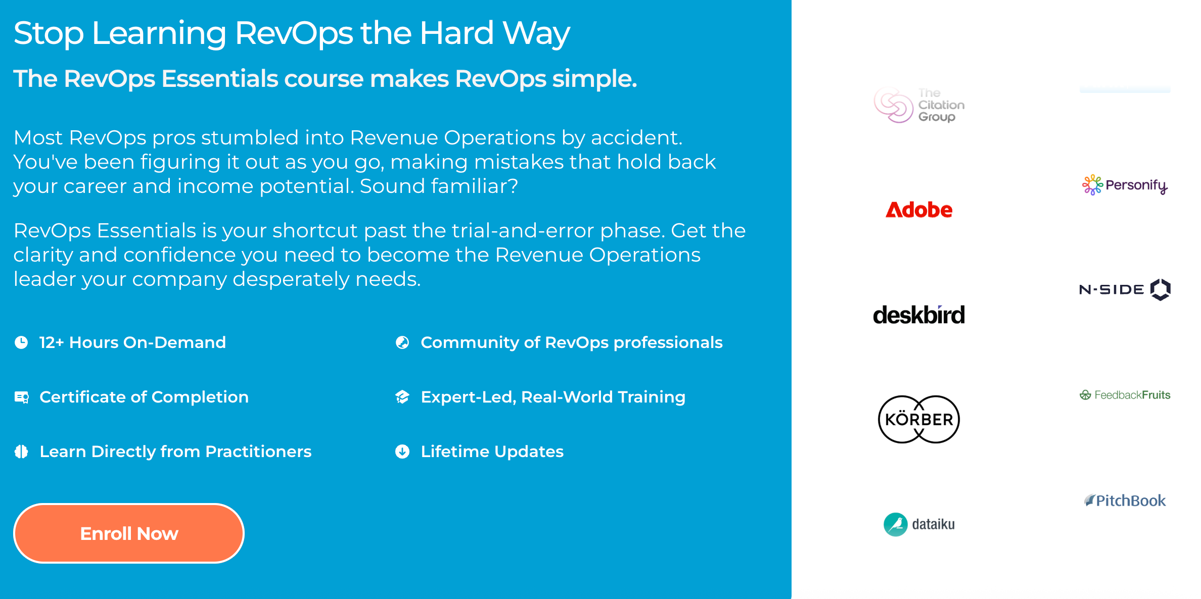 Over the past months we optimized our RevOps Essentials on-demand course. It is the perfect gateway to progress your RevOps career!