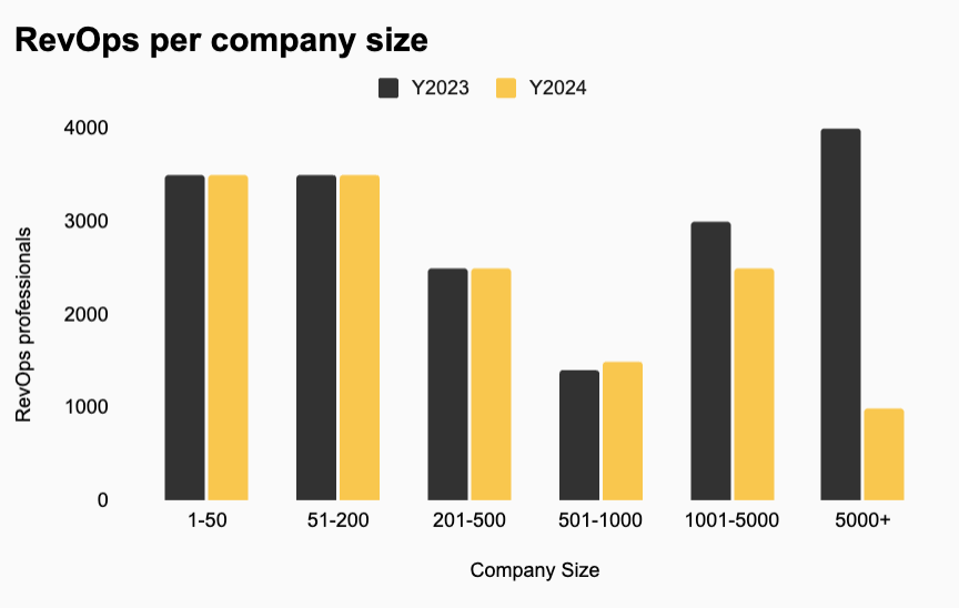 Interestingly, other company sizes haven’t been as impacted. It might be easier to find a new RevOps role in a startup compared to a large enterprise. There’s always another scaling startup around the corner that needs talented RevOps professionals.