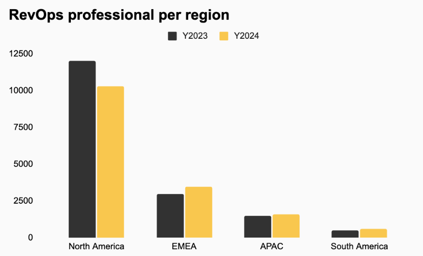 It’s possible that layoffs had such a strong impact in North America that, despite growth in the IT sector, the overall number of RevOps professionals declined.