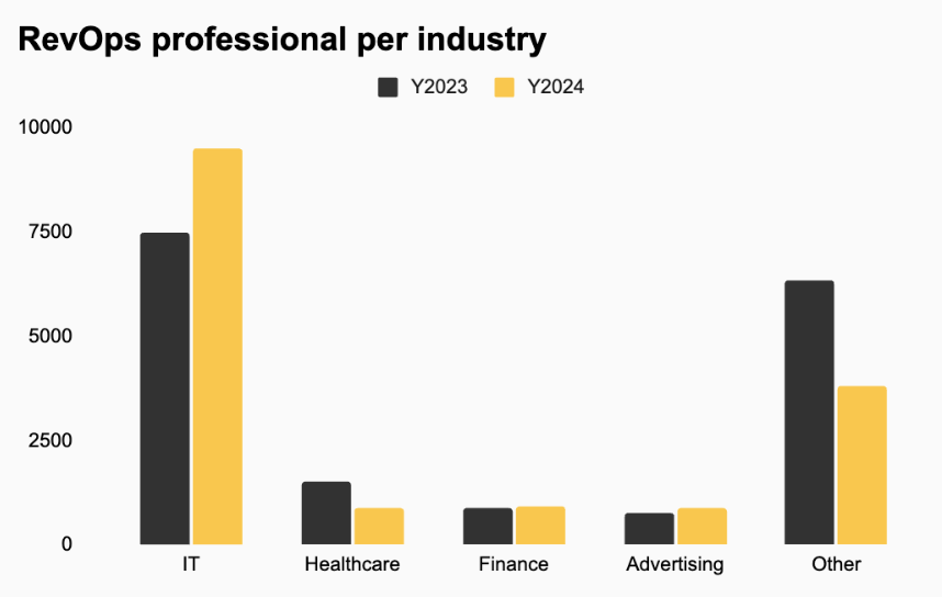 RevOps professionals in the IT sector increased, while other industries saw declines.