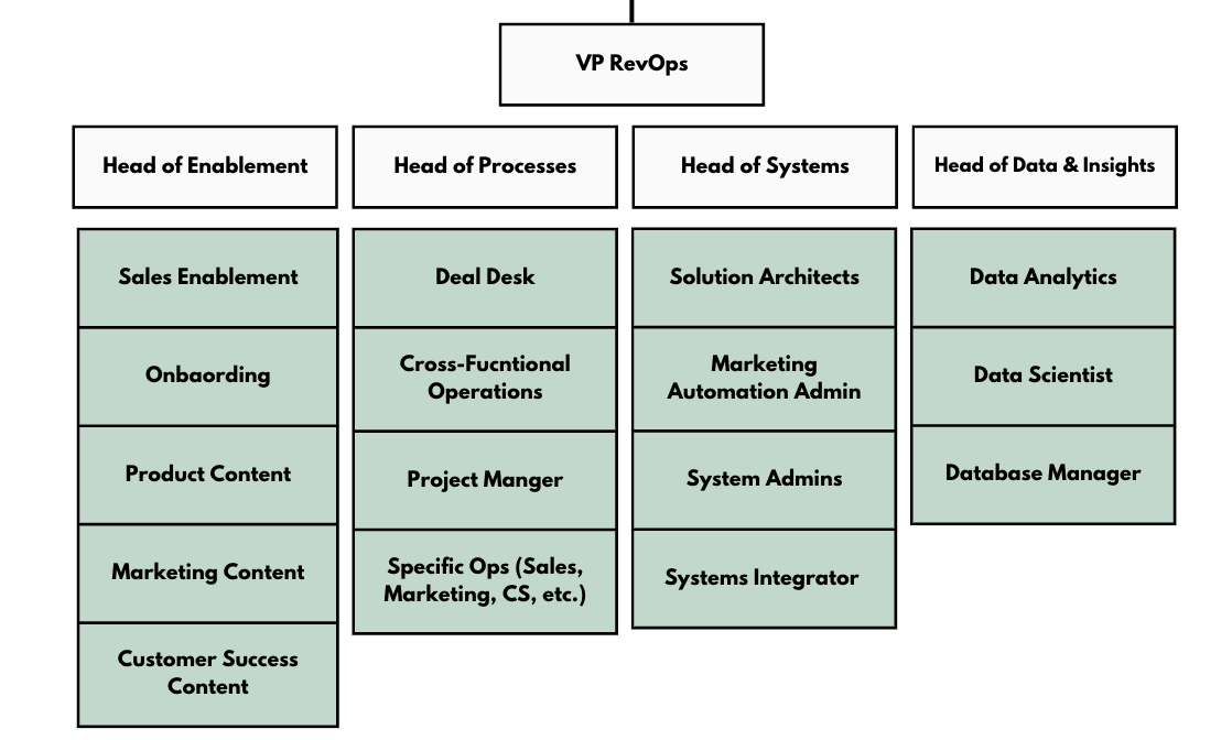 Another factor in large enterprises is the need for specialization. A person with a RevOps title may focus more on strategy, while execution roles (like enablement specialists, solution architects, or system administrators) might not carry the RevOps title but still fall under the RevOps umbrella.