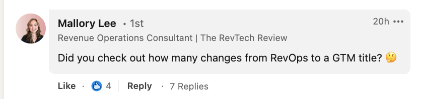 He made a great point. People are doing RevOps but may not necessarily have "RevOps" in their title.